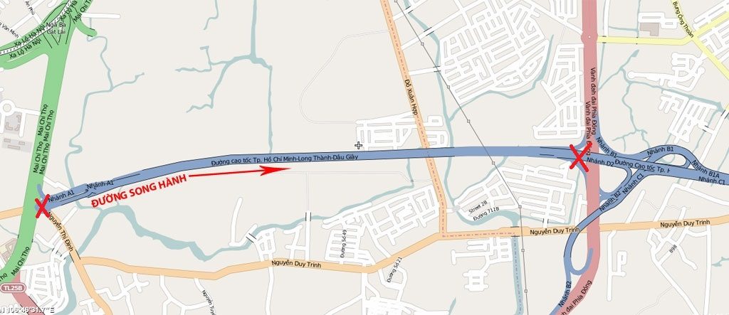 Dự án đường song hành có tổng vốn đầu tư 808 tỷ đồng do liên danh Công ty TNHH Nam Rạch Chiếc và Công ty Cổ phần Bất động sản Tiến Phước là nhà đầu tư theo hình thức BT. Dự án bao gồm hai đoạn đường song hành phía bên phải tuyến cao tốc TP HCM – Long Thành – Dầu Giây. Đoạn 1 dài 2.769,96 m có điểm đầu là đường Mai Chí Thọ và điểm cuối là đường Đỗ Xuân Hợp. Đoạn 2 dài 617,6 m có điểm đầu là đường D11 và điểm cuối là Vành Đai 2.